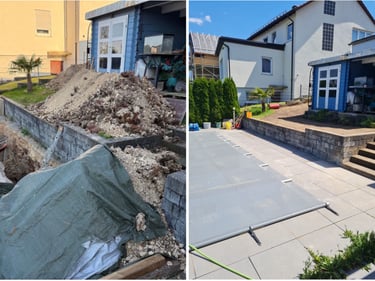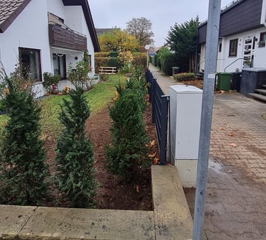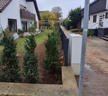 Von Hang abfangen und Mauerbau, bieten wir auch Baumfällungen, Heckenrückschnitt, Beet, Be- und Entwässerungsarbeiten an.