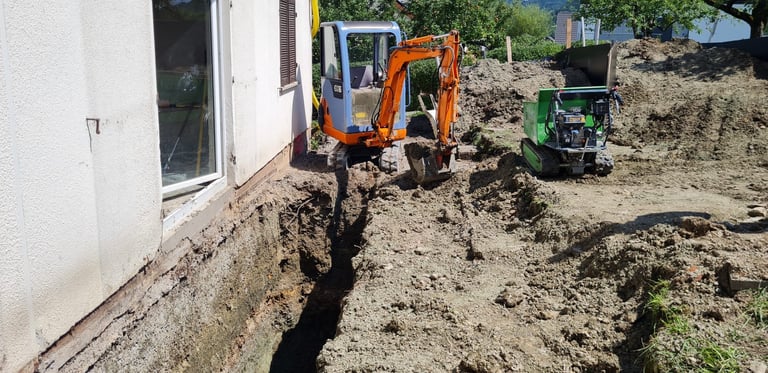 Aushub von Fundamenten, Gräben, Pool, Teich, Zisterne, Terrasse, Hauswand freilegen, uvm.